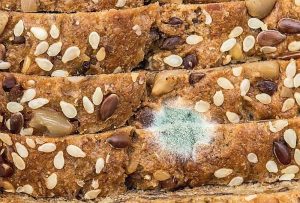 Augu izcelsmes pārtikas produktos, piemēram, graudos un riekstos, sēnītes ir galvenais to bojāšanās cēlonis, veidojot izplūdušus pelējuma plankumus zaļā, dzeltenā, melnā vai baltā krāsā, kas parasti izdala nepatīkamu smaku. Daudzas no šīm pelējuma sēnītēm ražo toksiskas ķīmiskas vielas, ko sauc par mikotoksīniem.