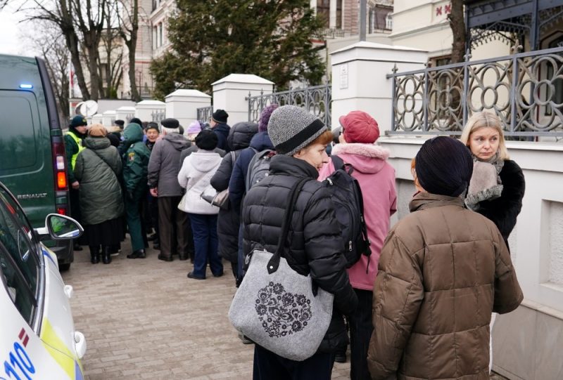 Dienas laikā dažbrīd pie Krievijas vēstniecības Latvijā bija redzama mānīgi gara rinda, atzīmēja policijas pārstāvji, piebilstot, ka tā veidojās tāpēc, ka Krievijas vēstniecības darbinieki “vēlēšanu” telpās atnākušos ielaida tikai pa vienam vai pa diviem. Lielākoties starp atnākušajiem bija redzami vecāka gadu gājuma cilvēki.