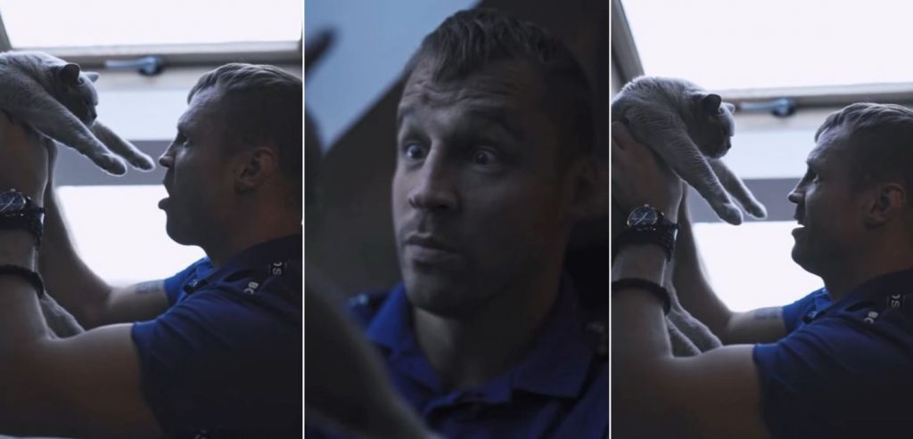 Vienā no tām viņš sarunājas ar kaķi, bet kādā citā – diskutē par mīļākajiem ēdieniem.
