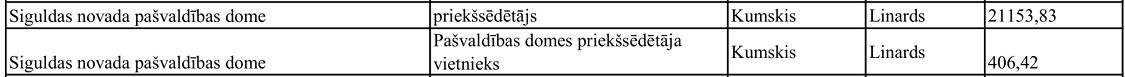 Lasītāji pievērsa mūsu uzmanību pārsteidzošām izmaksātajām atlīdzībām Siguldas novada iepriekšējā sasaukuma deputātiem. Summas (atsevišķiem cilvēkiem) ir mērāmas pat vairākos desmitos tūkstošu, ko apliecināja arī mājas lapā publicētās atalgojuma tabulas, kuras gan pēc žurnālistu intereses izrādīšanas operatīvi no mājas lapas tika izdzēstas. Par laimi, paspēju saglabāt ekrānuzņēmumus.