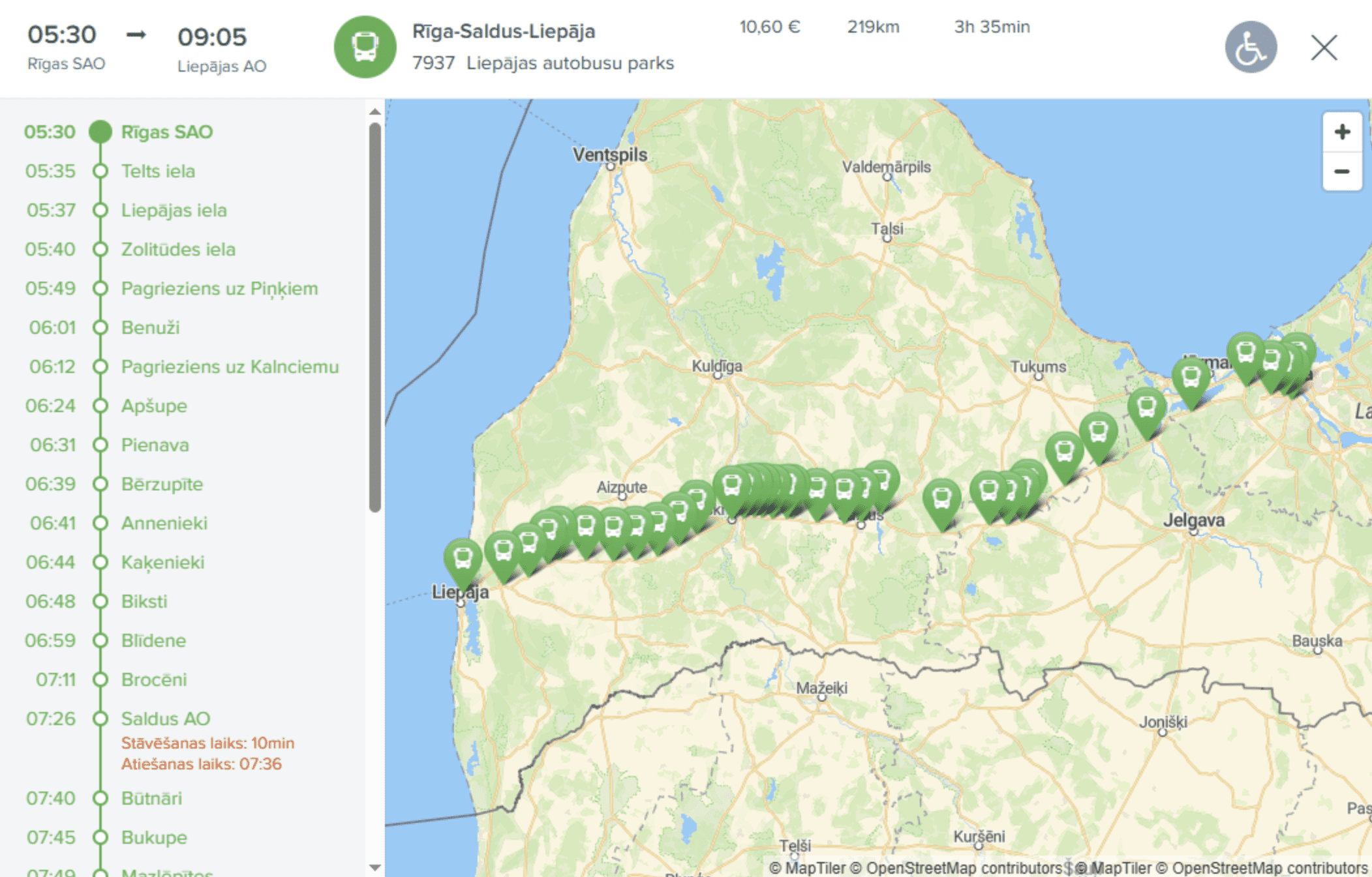 Ieskatam viņš dalās ar piemēru reisā no Rīgas starptautiskās autoostas uz Liepājas autoostu, kura ilgums ir 3 stundas un 35 minūtes.