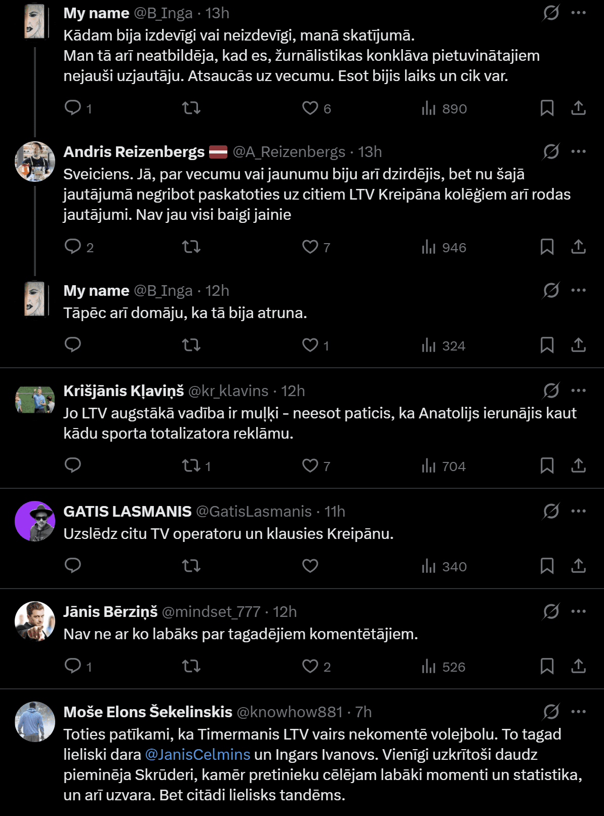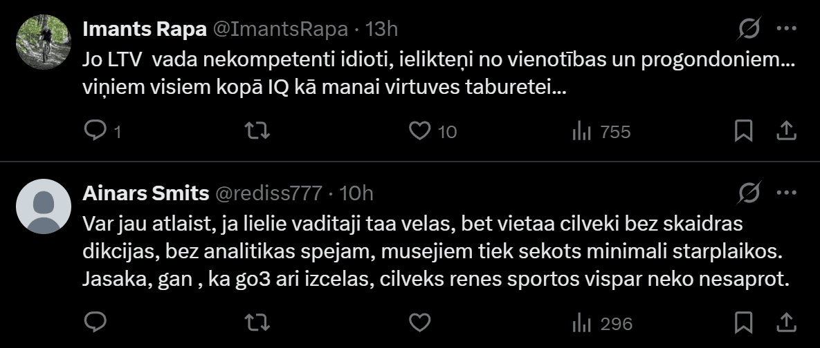 “Skatoties biatlonu LTV mani visu laiku nepamet jautājums Kāpēc Anatolijs Kreipāns bija jāatlaiž no komentēšanas!?” viņš X publiski raksta.