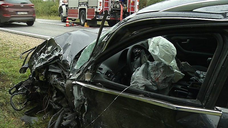 Pa pretējo joslu tuvojās melns ”Audi”, bet tā šoferis, šķiet, nebija spējīgs kontrolēt automašīnas stūri.