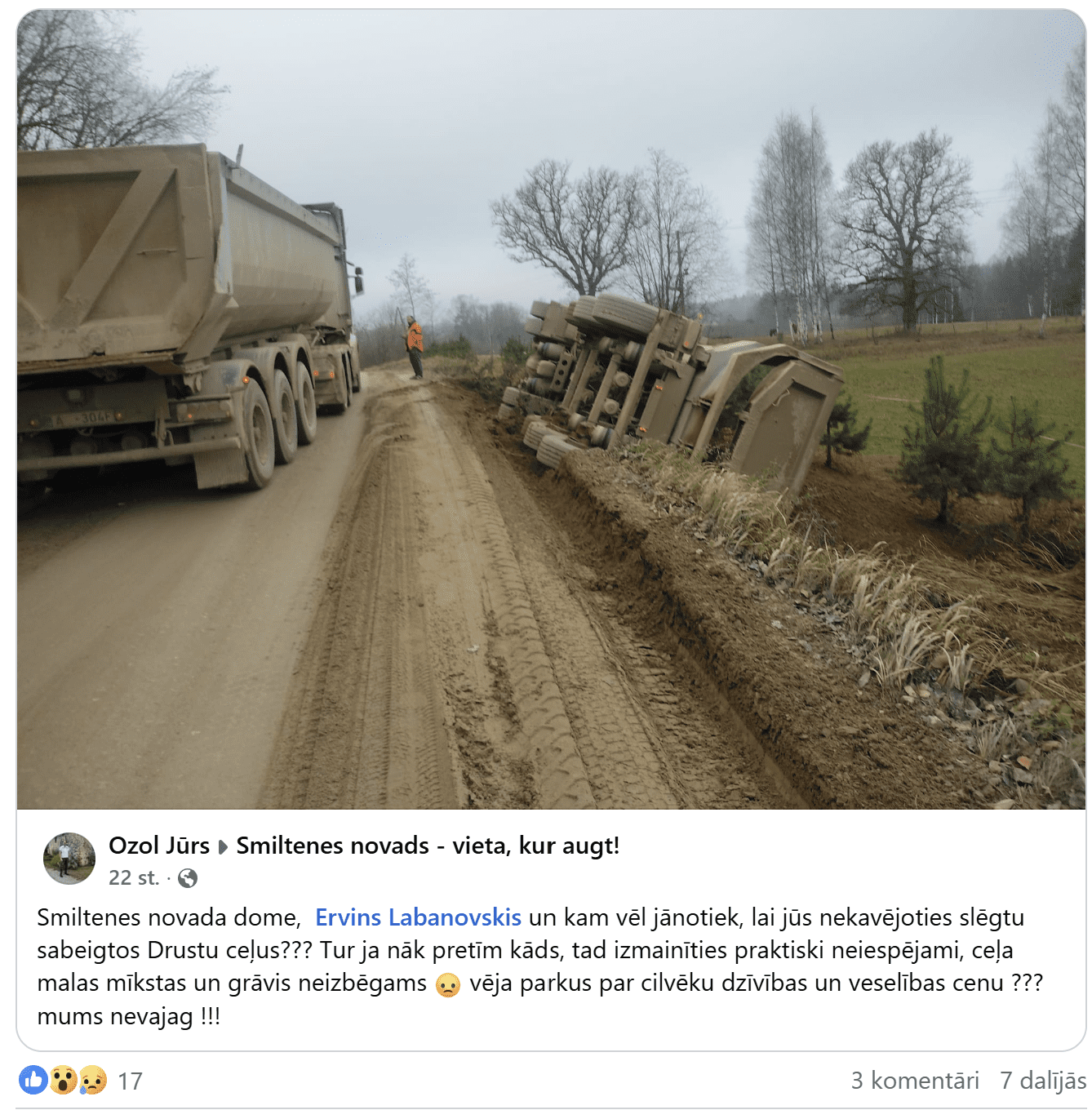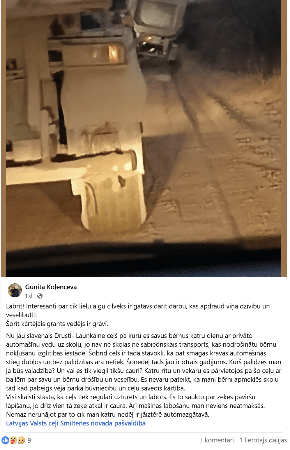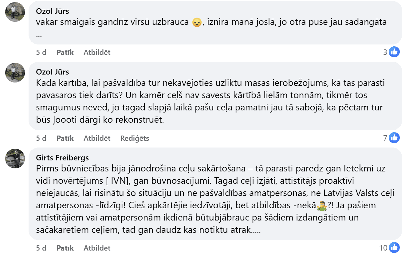 Katru dienu parādās arvien jauni pieredzes stāsti un sūdzības par ceļu, kas apdraud iedzīvotāju drošību un vieš pamatotas bailes.
