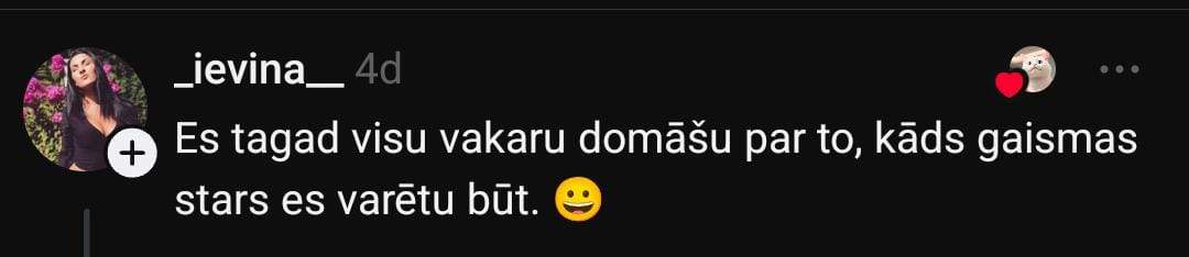 Man reiz prasīja – kāda veida gaismas stars tu esi un par kuru eksponātu tu vēlētos kļūt savā dzīvē. Vēl man reiz prasīja, kāpēc neesmu nevienā organizācijā. Tagad sēžu un domāju – kāds bija šo jautājumu mērķis un ko tieši vēlējās no manis uzzināt?”