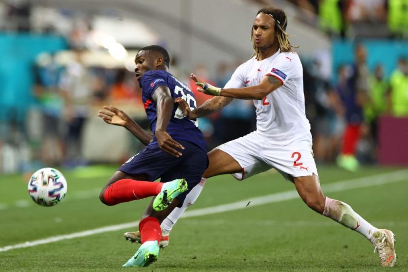 Kamēr Francijai pirmajā puslaikā Rafaēls Varāns, Kilians Mbapē un Adrjēns Rabio no labām pozīcijām sita garām vārtiem, savu vienīgo iespēju izmantoja Šveice.