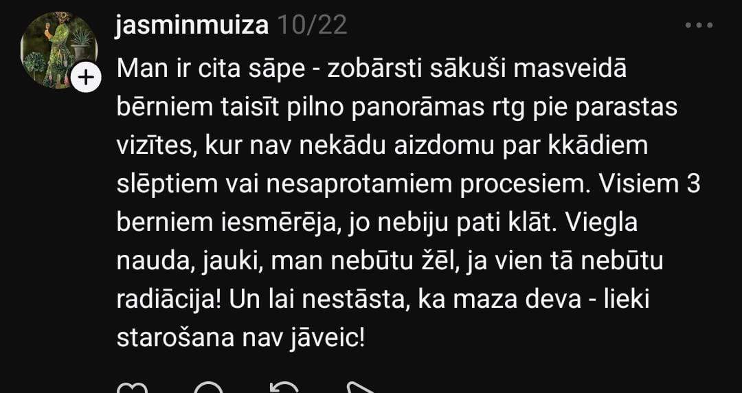 Sociālo mediju platformā “Threads” mamma Viktorija dalās ar savām pārdomām par satraucošu ainu Stomatoloģijas institūtā.