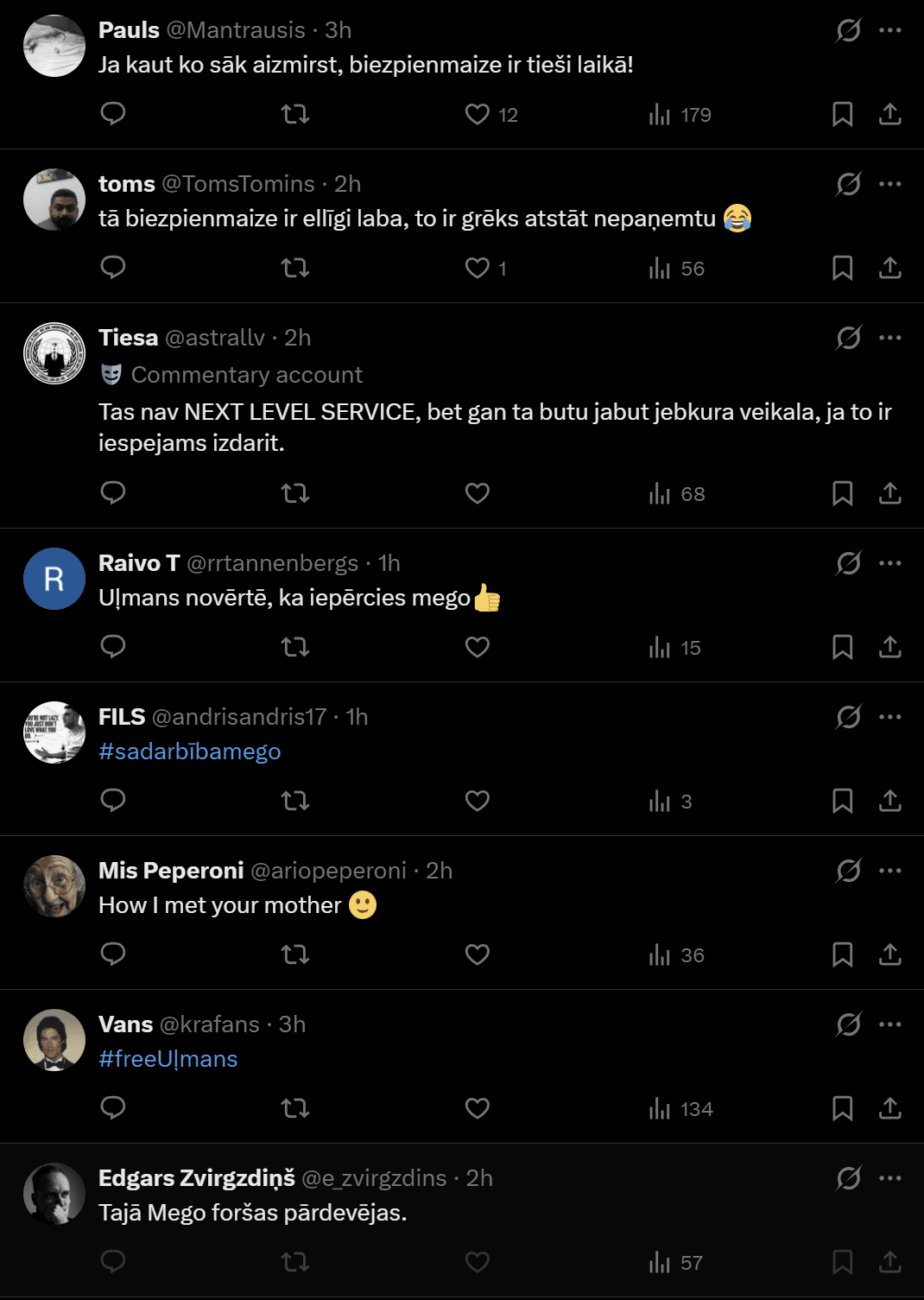 Līdzīgas pieredzes ir vēl vairākiem – kāds atzīst, ka viņam gandrīz noticis tas pats, tikai šoreiz aizmirsts bijis nevis bulciņu maisiņš, bet pats maksājums. Savukārt citi komentētāji uz situāciju skatās ar humoru, norādot, ka bieži vien aizmirst tieši biezpienmaizi. “Nu bet kā var biezpienmaizi aizmirst?” ironizē kāds lietotājs, kam piebalso citi, sakot – tā esot pārāk laba, lai to atstātu.
