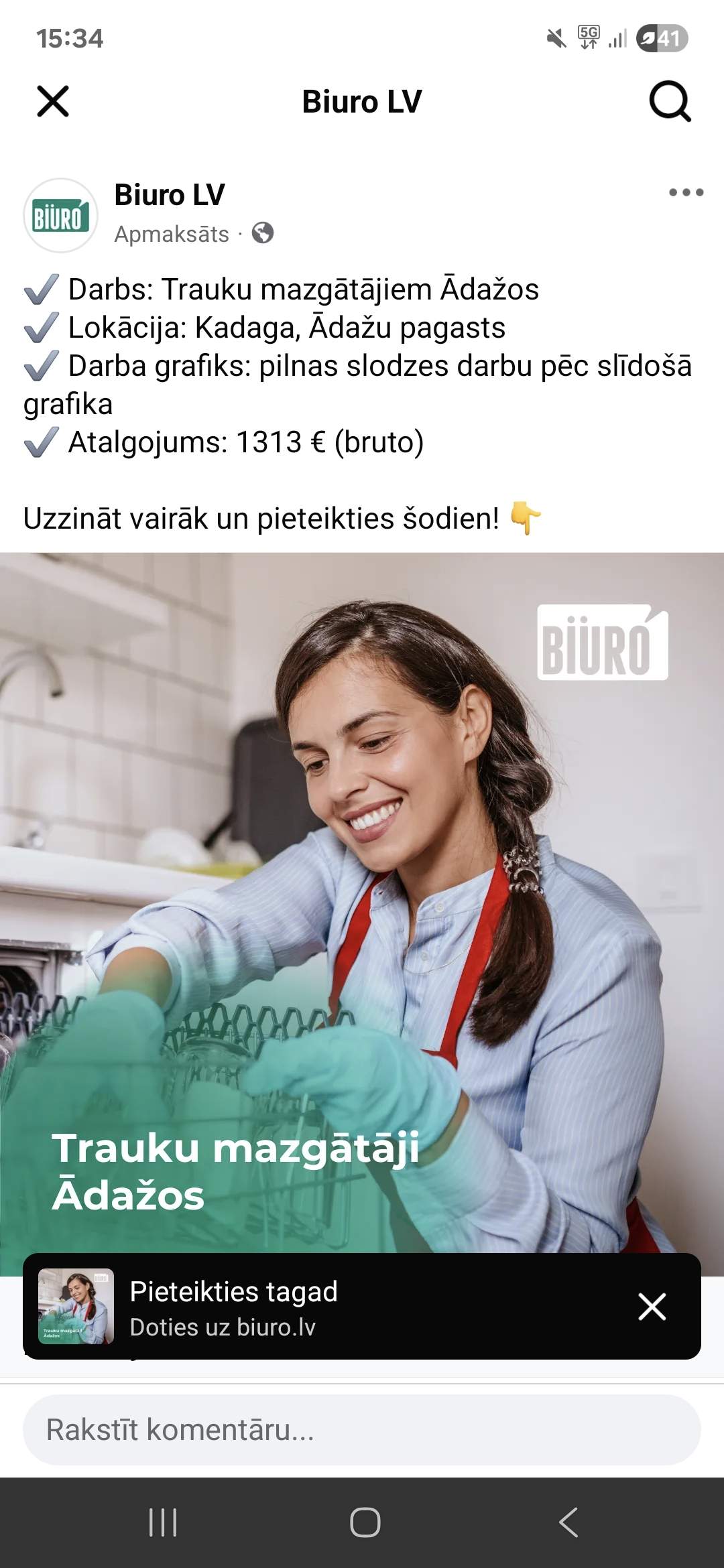 “Šobrīd strādāju par skolas māsu, kur bruto saņēmu 1220 eiro, Facebook atnāca reklāma par trauku mazgātājas vakanci, tur piedāvā 1313 eiro bruto par slodzi, pielikumā pieliku ekrānuzņēmumu. Vai jums tā liekas samērīga atšķirība? Esmu šokā vispār. Varbūt iet par trauku mazgātāju ar visu maģistra grādu 21.gadsimtā?