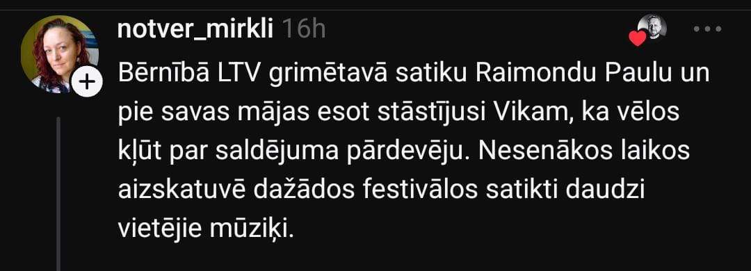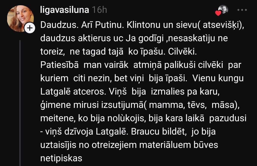 Arī Elīnai ir stāsts ar kuru padalīties: “Savulaik satiku un bija privāta saruna ar Vairu Vīķi- Freibergu! Saruna man un citiem bērniem tajā laikā! Privāta, jo viņa palūdza kameru operatoriem iziet no telpas, lai bērni justos drošāki🥹🤌🏼Biju 11 gadus veca aptuveni un vēl tagad atceros, cik ļoti lepojos ar to notikumu.”