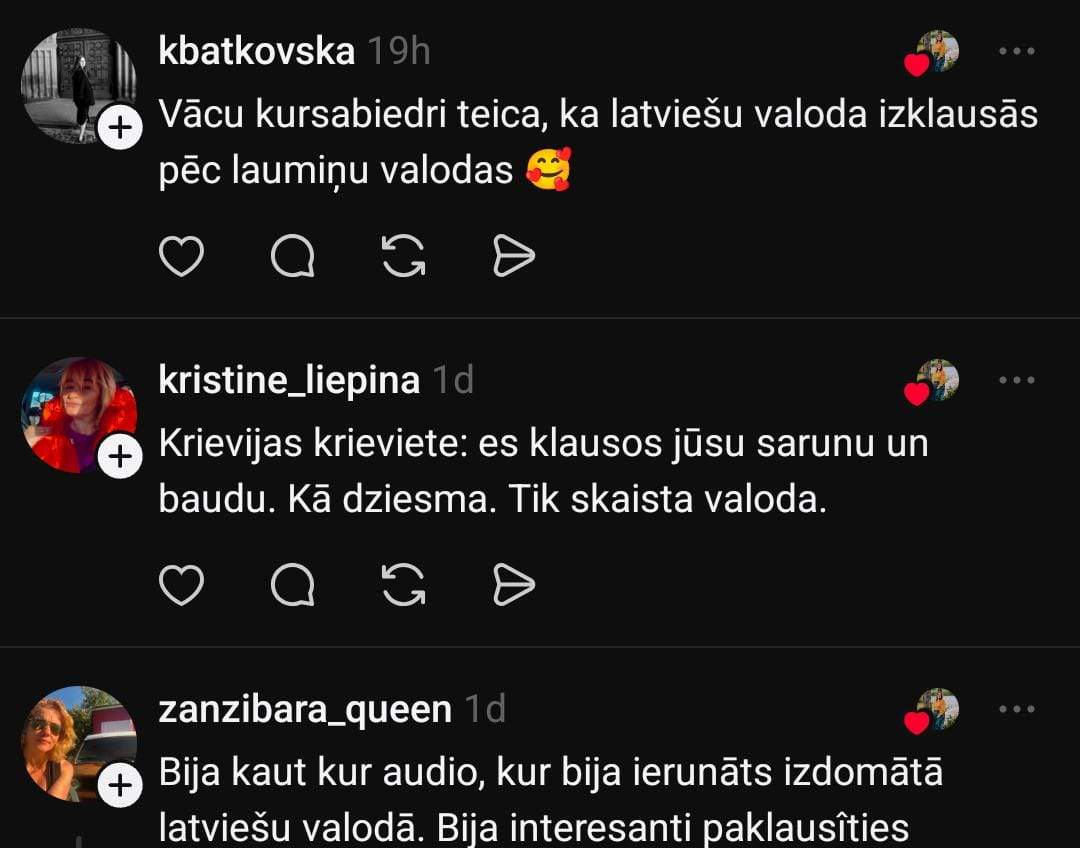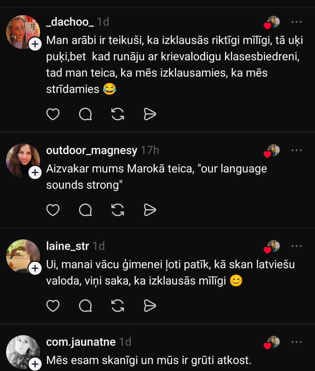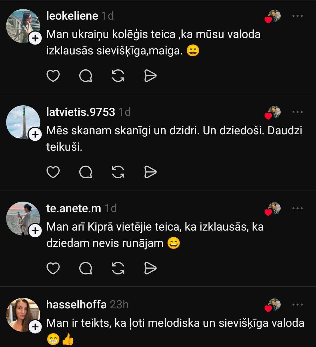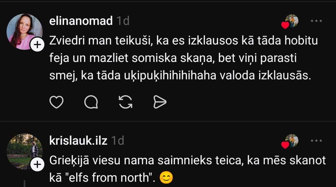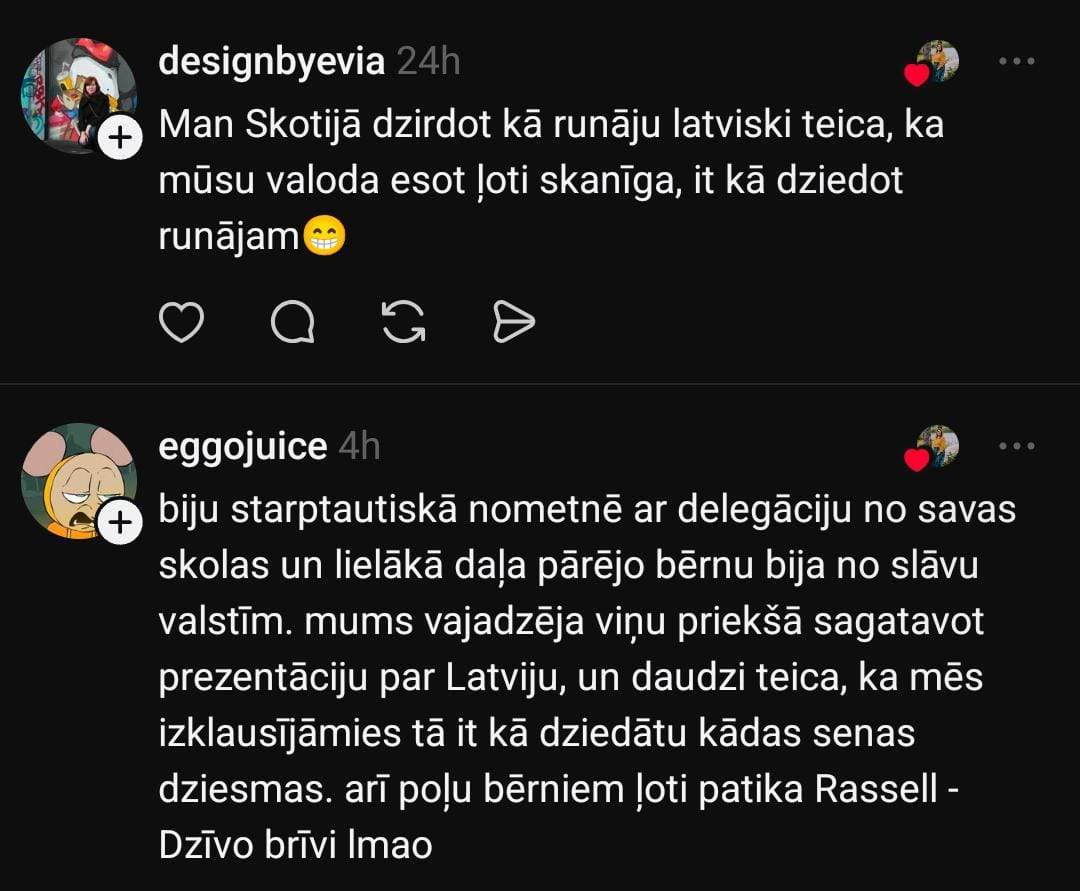 Kāda cita lietotāja raksta: “Man Zviedrijā viens puisis teica, ka izklausās, ka mēs dziedam repu… Nu tā, kā ritmiski skaitītu.”