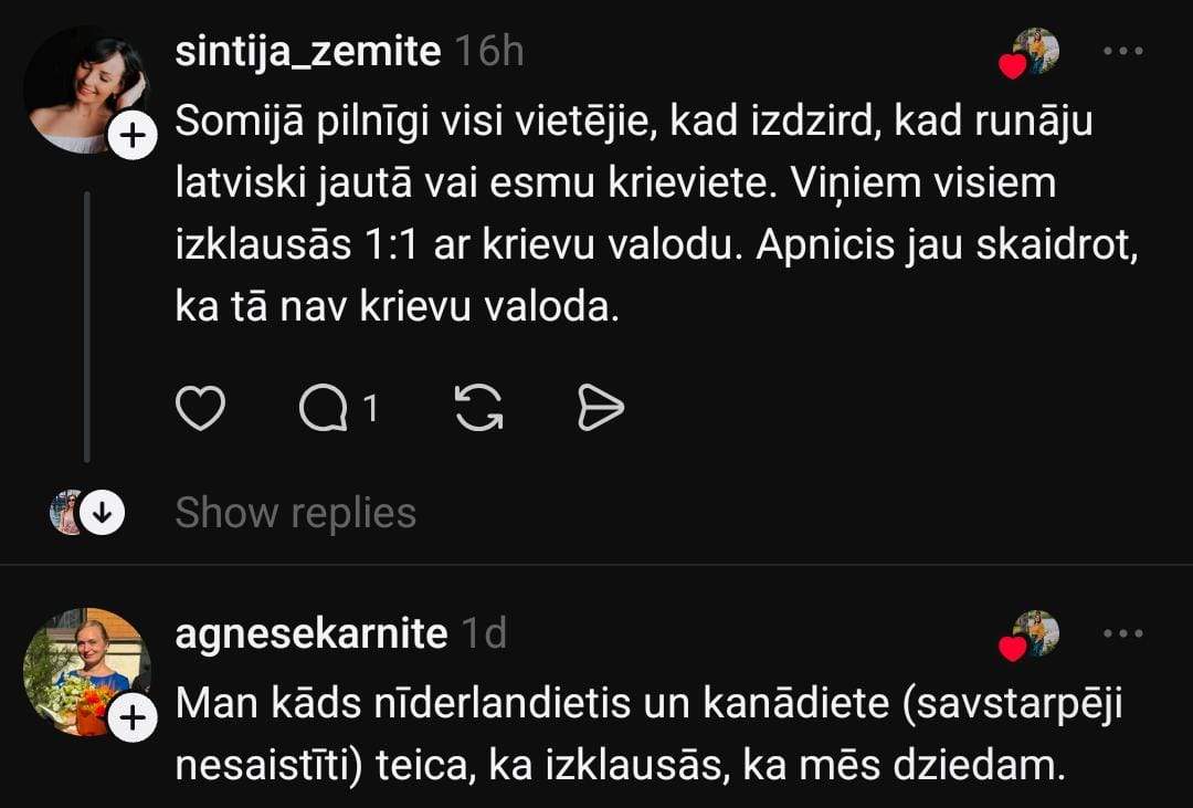 Sociālo mediju platformā “Threads” izvērsusies interesanta diskusija, kurā cilvēki spriež, kā mēs, latvieši, izklausāmies, savā starpā sarunājoties.