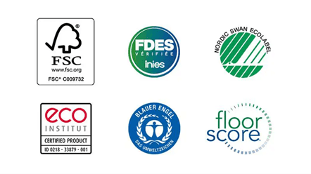 - sertifikāti, piemēram, FloorScore, CE, REACH,