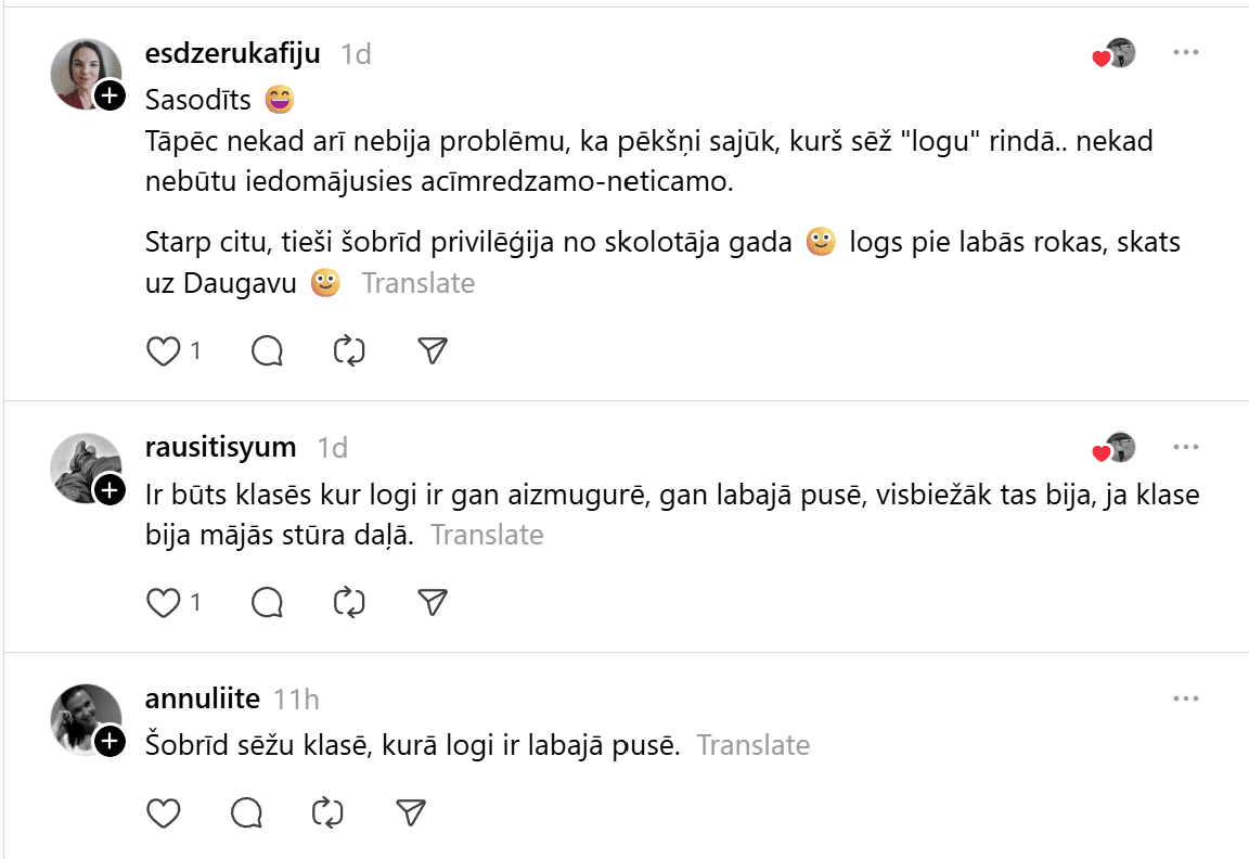 “Spēju tikai vienu mācību priekšmetu iedomāties, kur logs bija labajā pusē – informātikā, jo datori bija salikti pa klases perimetru,” dalās kāds komentētājs.