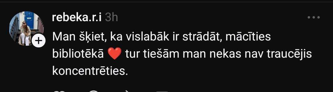 Arī Eva domā, ka tas ir trends un šobrīd tas skaitās stilīgi. Viņa gan norāda, ka viņai ir žēl kafejnīcu īpašnieku, jo galdiņi tiek aizņemti stundām ilgi, taču pasūtīta tiek vien kafija.