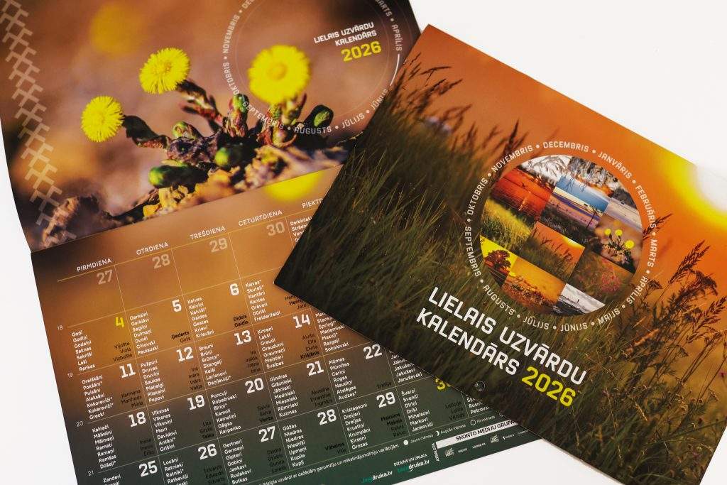 2026. gada kalendāru piedāvājuma klāstā ir 6 kalendāra veidi visām gaumēm -ar bildēm, ar piezīmēm, trīsdaļīgais, galda un pat kalendārs – plānotājs. Kalendārus var iegādāties internetā www.uzvardukalendars.lv un lielākajās grāmatnīcās visā Latvijā.