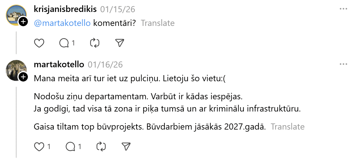 Arī cita iedzīvotāja dalījās savā pieredzē, atklājot, ka tieši šis bijis iemesls, kāpēc savu bērnu uz dejas nodarbībām vienmēr veda ar automašīnu: “Šis bija vienīgais iemesls, kāpēc 3 gadu garumā vadāju meitu ar auto uz deju nodarbībām VEF kvartālā, jo reāli baidījos laist vienu pa tuneli.”