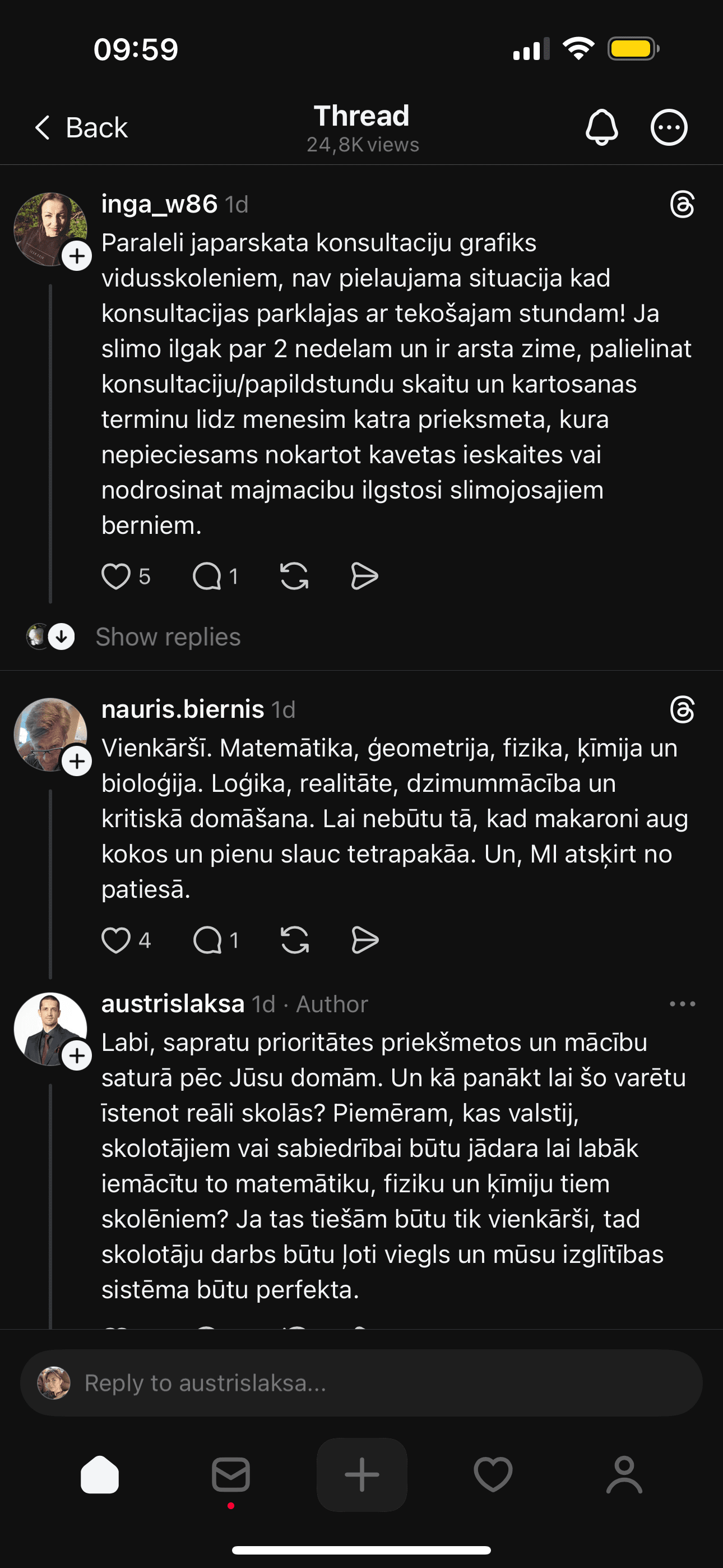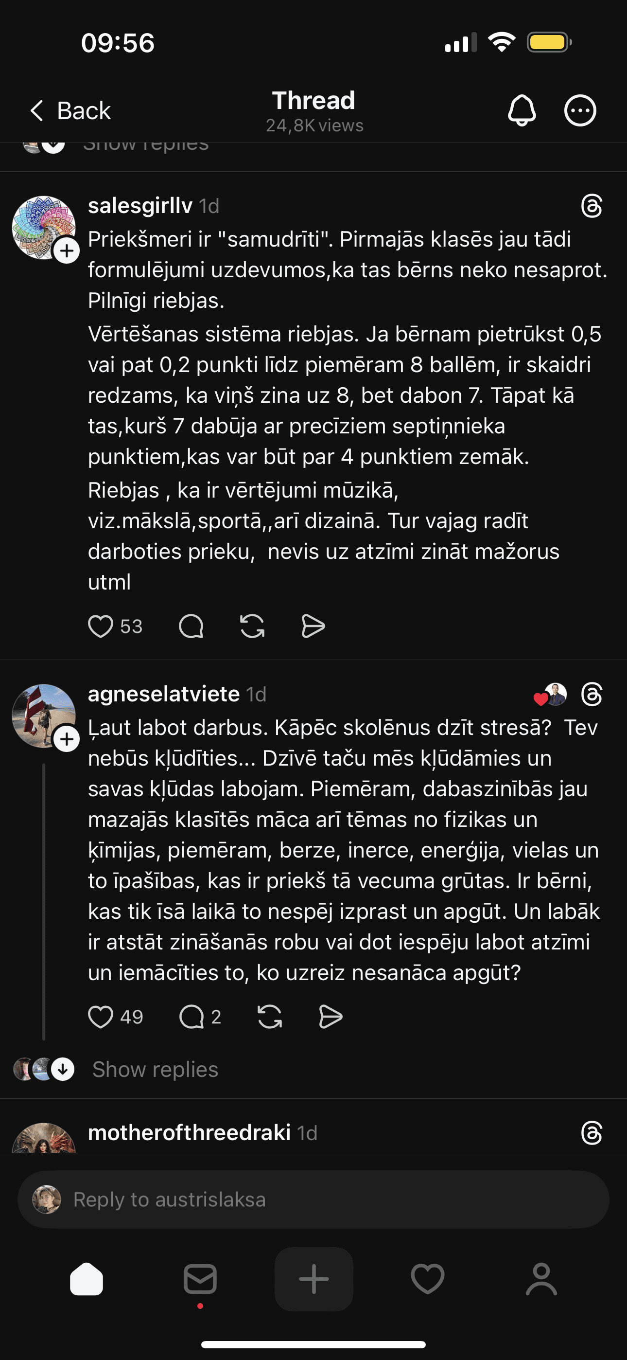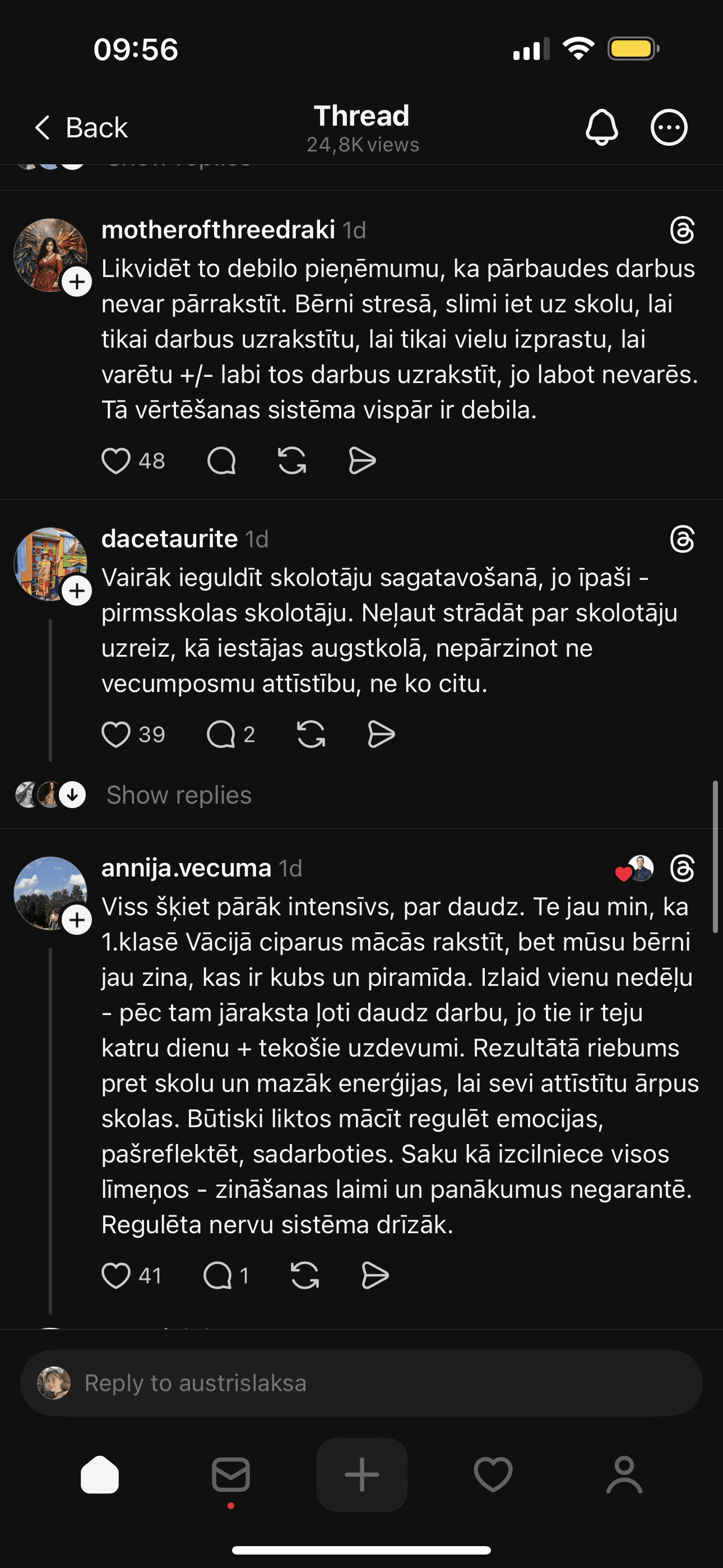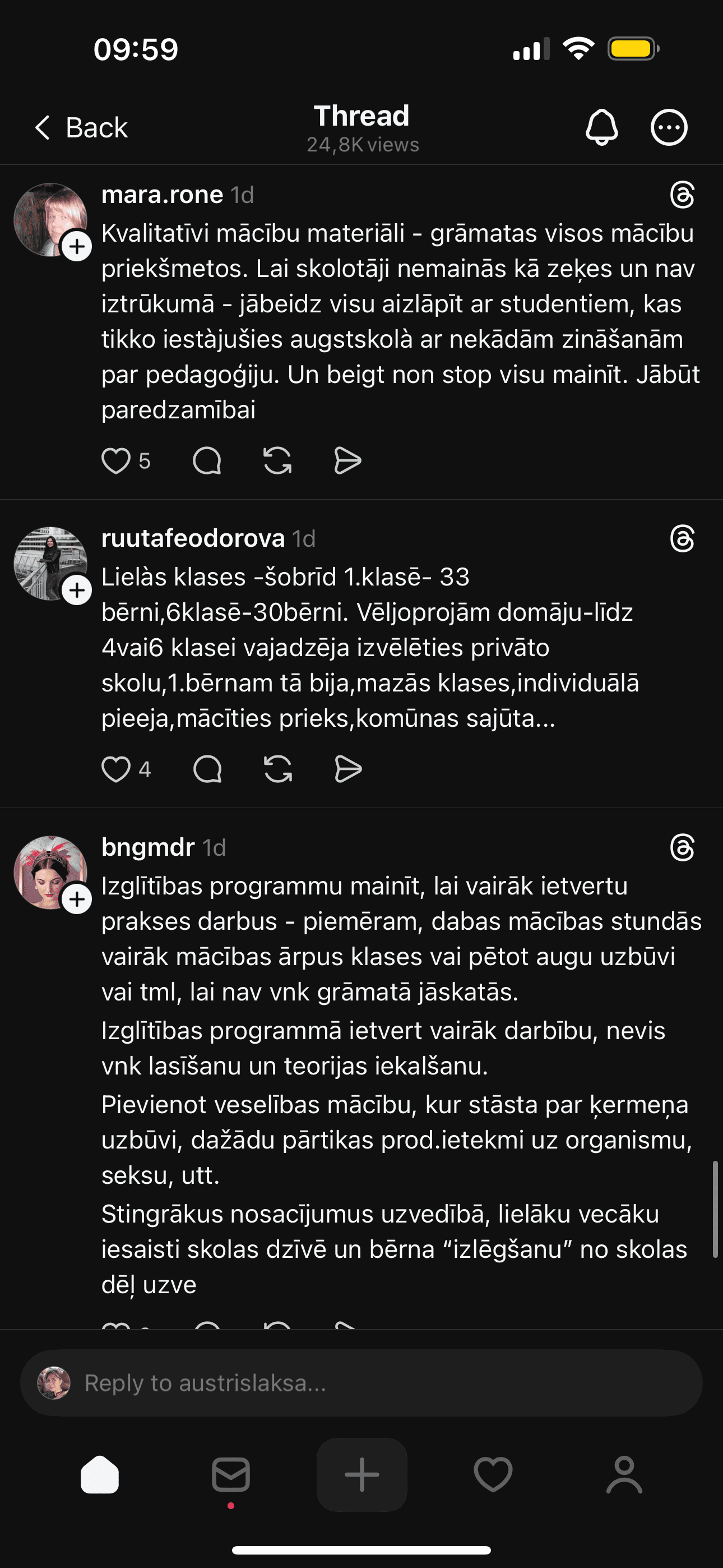 Par Latvijas izglītības sistēmu ikdienā dzirdamas neskaitāmas sūdzības – gan no vecākiem, gan pedagogiem, gan pašiem skolēniem. Tiek runāts par pārmērīgu slodzi, nepārdomātām reformām, motivācijas trūkumu un sajūtu, ka sistēma bieži vien nenāk par labu bērnu attīstībai, bet gan rada stresu un izdegšanu jau agrā vecumā. Sabiedrībā arvien biežāk tiek uzdots jautājums – kas īsti būtu jāmaina, lai izglītība Latvijā patiešām strādātu bērnu labā? Šādu jautājumu vietnē “Threads” uzdod arī kāds 12. klases skolotājs.