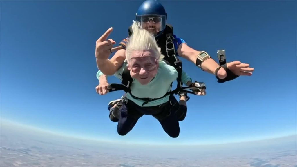 VIDEO. 104 gadus veca sieviete uzstāda pasaules rekordu un kļūst par visu laiku vecāko izpletņlēcēju 8