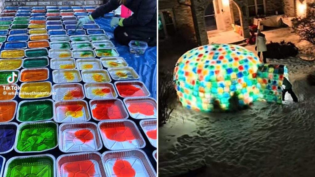 VIDEO. 700 ledus bloki un nedēļām ilgs darbs: ģimene uzceļ milzu varavīksnes iglu 0