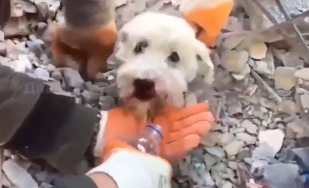 Soctīklos strauji populārs kļuvis video no Turcijas – tajā redzams, kā no drupām Turcijā glābēji izrakuši mazu, baltu sunīti.