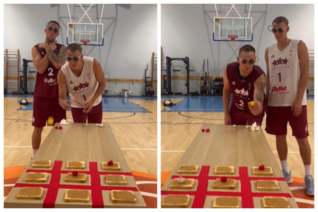 VIDEO. Amizanti! Basketbolisti Lasmanis un Miezis sacenšas “desās”. Kurš uzvarēja? 2