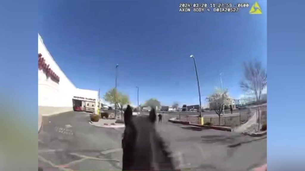 Virsnieks sauc viņam pakaļ, kliedzot: “Stop! Albukerkas policija! Jūs tiekat aizturēts!”