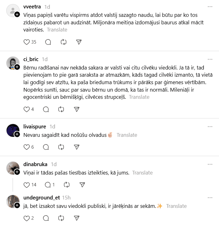 Izvēle radīt vai neradīt bērnus ir katra paša ziņā, tomēr šī tēma ir sensitīva, jo ikviens publiski pausts viedoklis, izraisīs apkārtējo reakciju.