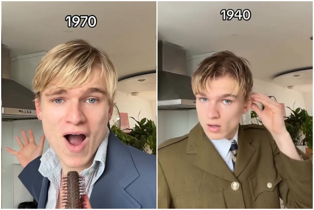 Izglītojošā un amizantā video, kas ļauj ieskatīties 100 gadu tālā pagātnē, kāds jaunietis parāda, kā dažādās desmitgadēs mainījušās vīriešu frizūru tendences.
