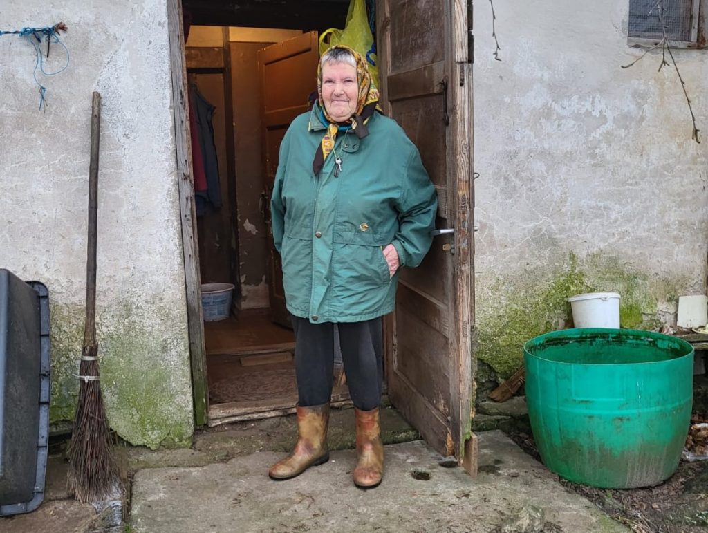 Pirms pāris gadiem piedzīvots insults, pēc kura sievietei ir radušās grūtības runāt, vispār zaudējusi spēju rakstīt, ikdienā ir spiesta lietot medikamentus. Bet nesen gadījies arī satraumēt kāju. Viņa gan, uz sevi dusmodamās, nosaka: “Pati esmu vainīga! Stūmu ķerrā skaidas kaķiem, gribēju iziet pa taisnāko ceļu un nokritu. Pati zemē, ķerra ar maisiem virsū.”