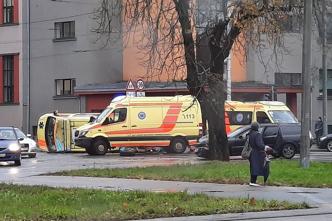 VIDEO. Avārijā Pārdaugavā “ātrās palīdzības” auto apgāzies uz sāniem 11