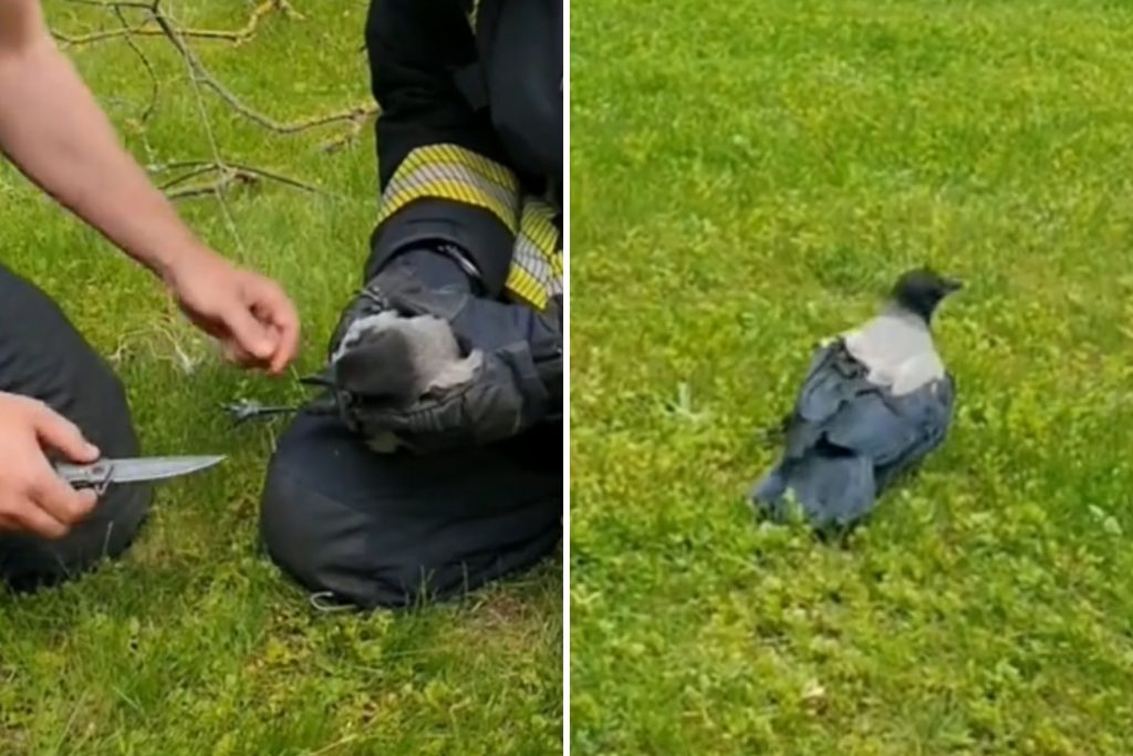 Par laimi, vārnu izdevās atbrīvot, un tā aizlidoja brīvībā.