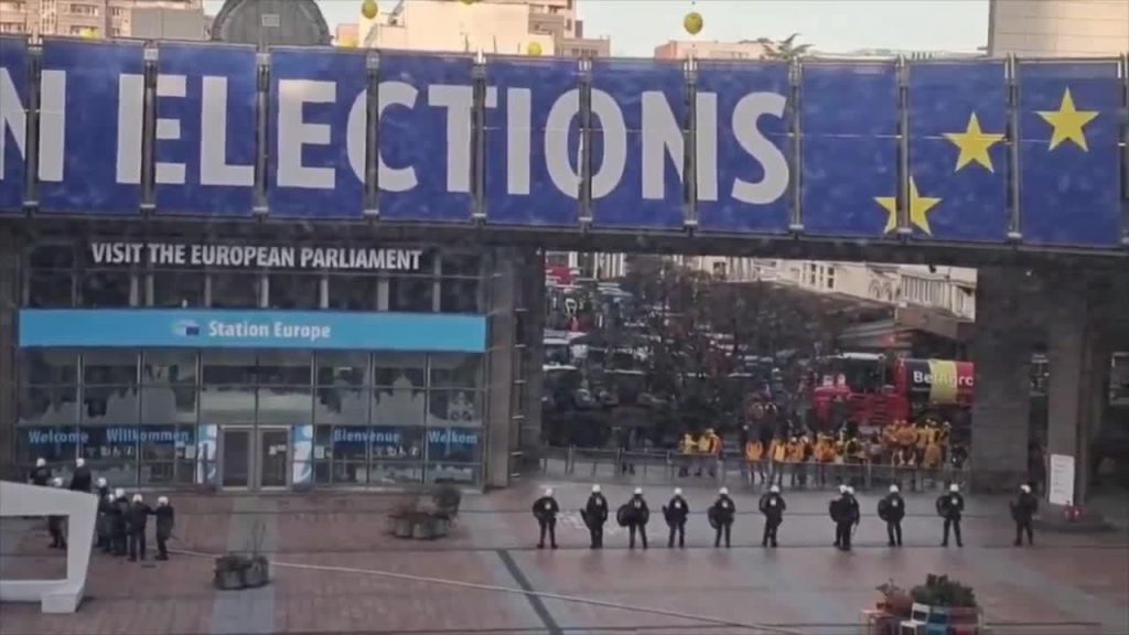 Simtiem dusmīgu lauksaimnieku ieradušies Briselē, kur pie Eiropas Parlamenta (EP) ēkas protestē pret nodokļiem, izmaksu pieaugumu un lēto importu.
