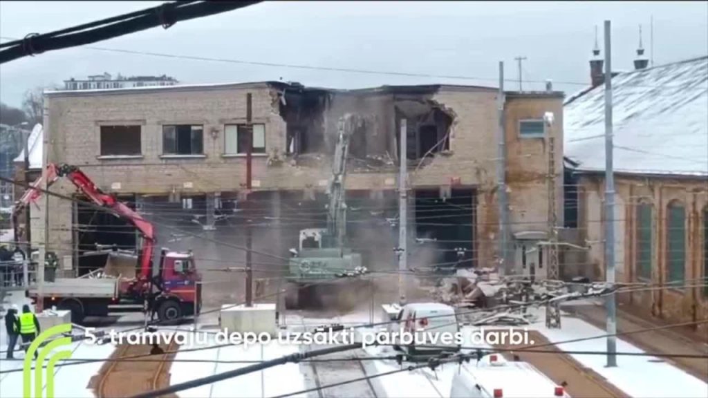 “Rīgas Satiksmes” 5. tramvaju depo uzsākti pārbūves darbi. Uzņēmums vietnē “X” dalījies ar video no demontāžas darbiem.