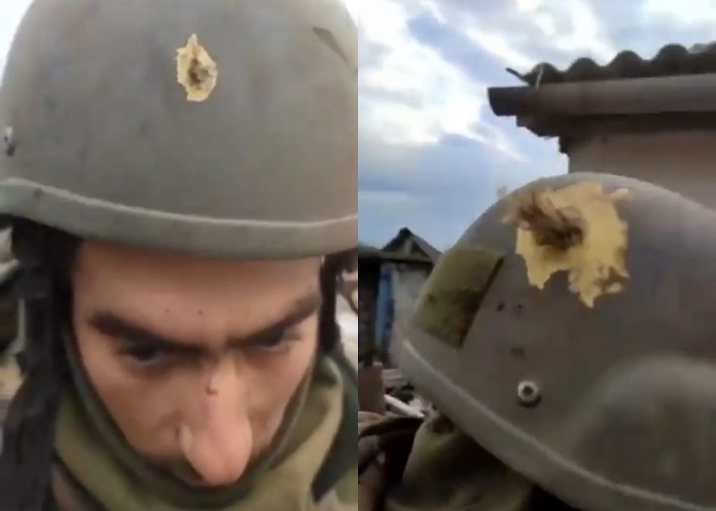 Kāds ukraiņu karavīrs dzimis laimes krekliņā un brīnumainā kārtā izdzīvojis pēc tam, kad lode izgāja cauri viņa ķiverei.