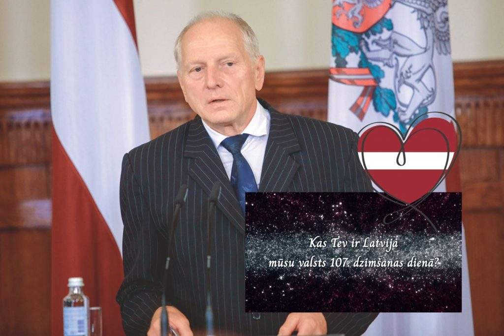 Vēlējums valstij 107 gados. Iesim uz priekšu! Ir grūti laiki. Mēs esam kara stāvoklī, bet mēs šo karu varam uzvarēt un mēs to noteikti uzvarēsim, jo mūsu pretinieks baidās, ja mēs esam gatavi iet cīņā ar to atkal un atkal un pastāvēt par sevi. Un runāsim latviski!