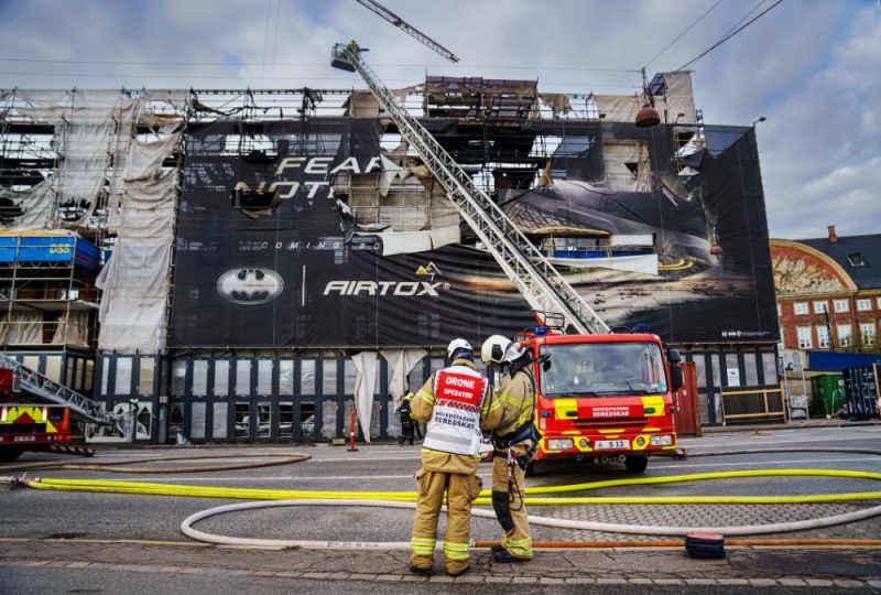 Ugunsgrēks bijušajā biržā izcēlās otrdienas rītā. Puse no ēkas ir nodegusi un nogāzusies arī 54 metrus augstā ēkas smaile, kas bija viena no Kopenhāgenas ainavu raksturojošajiem elementiem.