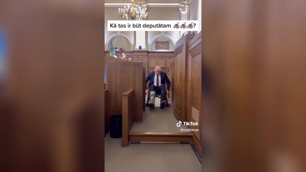 VIDEO. Deputāts Kulbergs demonstrē, kā ir strādāt Saeimā cilvēkam, kurš pārvietojas ratiņkrēslā 25