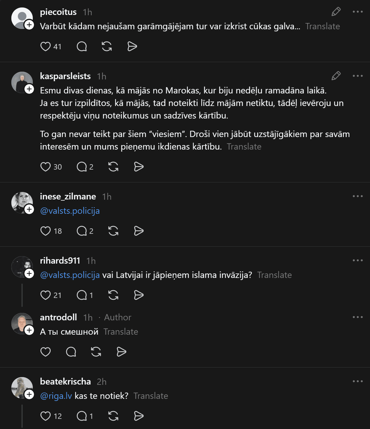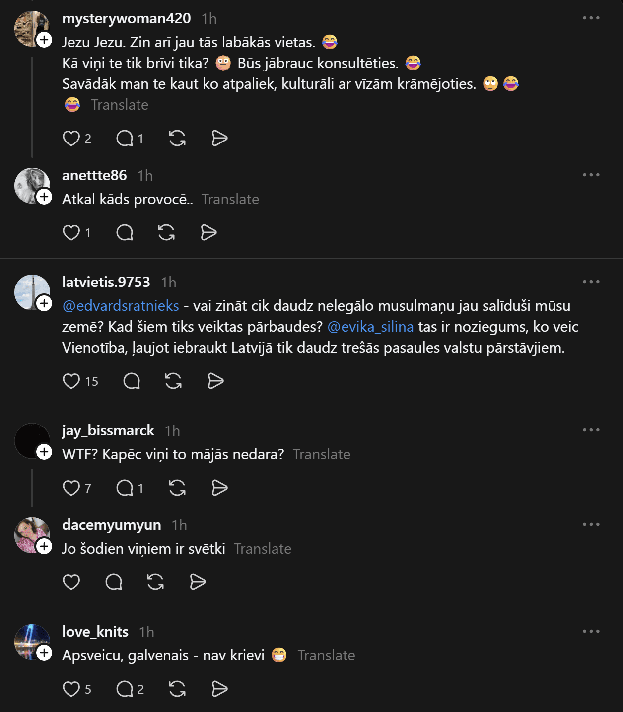 Rīgas vicemērs Edvards Ratnieks norāda, ka Rīgas pašvaldības policija gadījumos, ja konstatē nelegālos migrantus, rīkojas sev piešķirto pilnvaru ietvaros – ja konstatē, ka konkrētajam pilsonim nav pamats atrasties mūsu valstī, tad par to informē sadarbības iestādes, bet daļa šo cilvēku atrodas ar studentu vīzām. Kāpēc Latvijas valdības laiž viņus visus šeit iekšā?