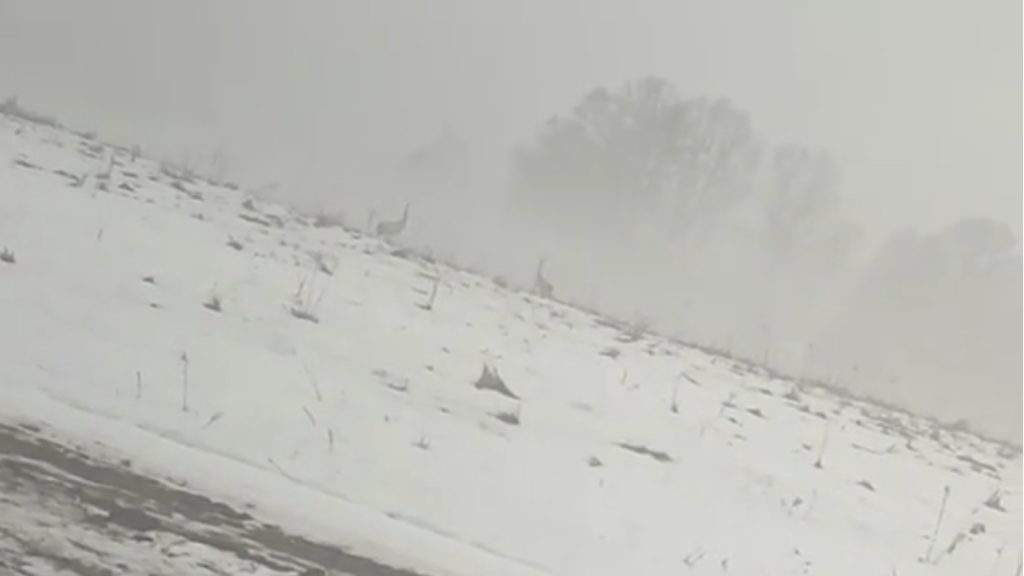 Vietnē “TikTok” publicēts video, kurā redzams miglā tīts un sniegā klāts lauks. Pa to nesteidzīgi pastaigājas un savā starpā sakliedzas dzērvju pāris – skats, kas daudziem Latvijā asociējas ar pavasara tuvošanos.
