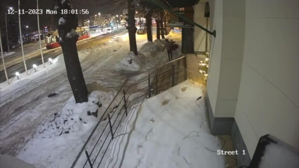 VIDEO. “Eglīti var nozagt, bet svētkus ne!” Vīrietis no Liepājas centra viesnīcas nozog ar lampiņām izrotātu eglīti 35