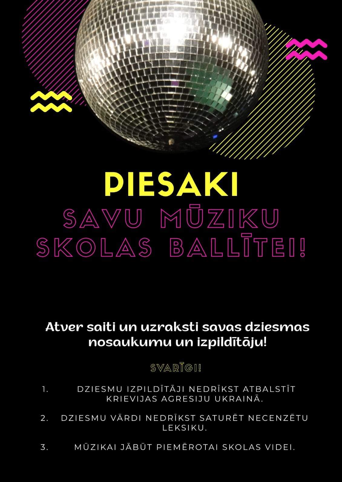 Direktore skaidro, ka jau pirms pasākuma sociālajos tīklos tika izplatīts aicinājums jauniešiem pašiem iesūtīt dziesmas, ko viņi vēlas dzirdēt ballītē. Aicinājumā tika pievienota informācija, ka dziesmu izpildītāji nedrīkst būt tādi, kas atbalsta Krievijas agresiju Ukrainā, kā arī dziesmu vārdi nedrīkst saturēt necenzētu leksiku. Mūzikai jābūt piemērotai atskaņošanai skolā.