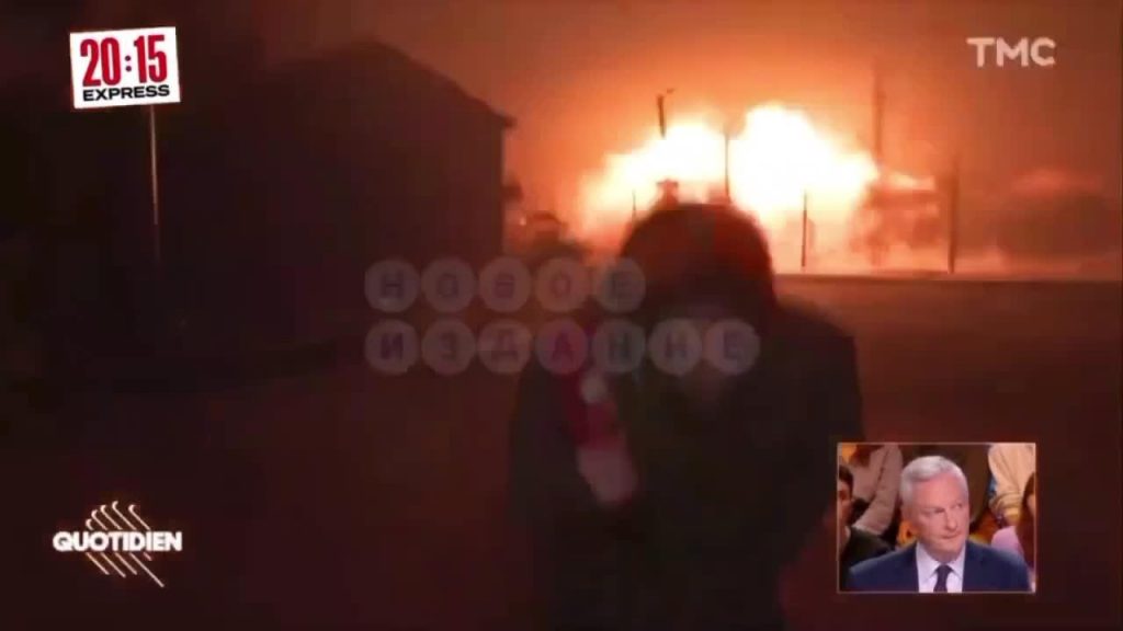 Brīdis, kad viena no šīm raķetēm nokrīt, ticis fiksēts Francijas televīzijas kanāla TMC tiešajā ēterā.