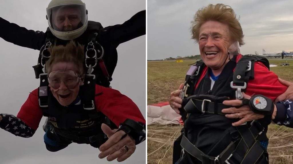 VIDEO. “Sapņiem nav derīguma termiņa!” 86 gadus veca seniore ar izpletni izlec 1000. reizi savā mūžā