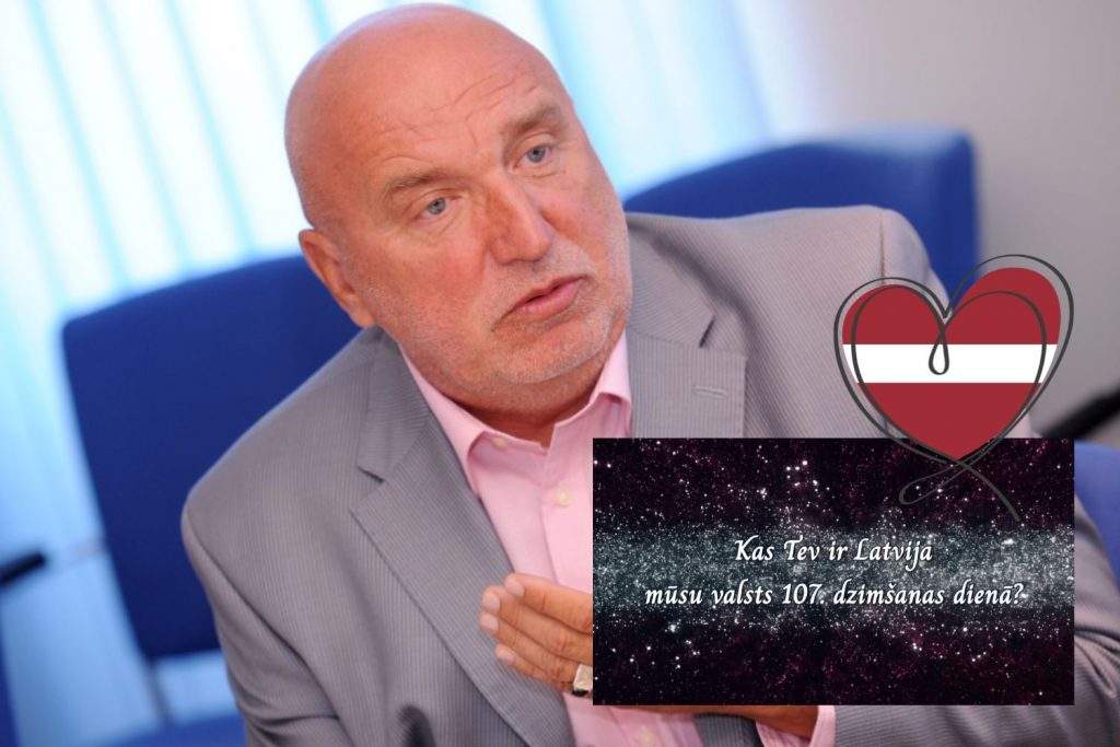 Latvija – vienā teikumā – tā ir mana valsts, es vēl teiktu – mūsu valsts. Un ar “mūsu” es saprotu latviešus, jo es nestādos priekšā, ka varētu būt latvieši, kas teiktu, ka tā nav mana valsts. Drīkst teikt – tā nav mana valdība, tie nav mani politiķi, arī – ka tie nav mani tādi un tādi cilvēki, bet – Latvija ir mūsu valsts. Un es domāju ne tikai latviešus. Te jau ir arī daudzi Latvijā dzīvojoši cilvēki, kas varbūt nav latvieši pēc tautības, bet kam Latvija ir mūsu valsts.