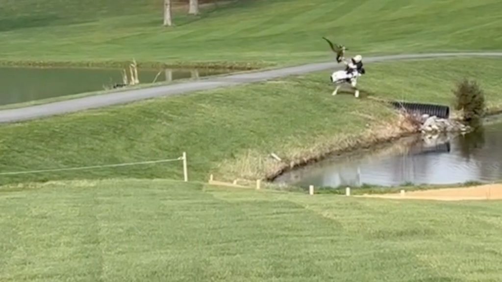 Negaidīts notikums golfa laukumā sasmīdinājis internetu – kāda pikta zoss uzbruka jaunam golferim, liekot viņam zaudēt līdzsvaru un ar visām nūjām iegāzties ūdenī.