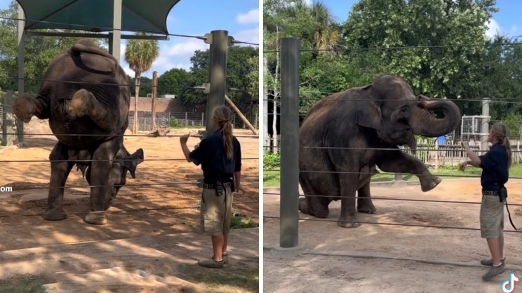 Ziloņu mātīte vārdā Tesa pat spēj atbalstīt savu masīvo ķermeni uz priekšējām kājām un veikt vairākus citus sarežģītus vingrojumus, kas ir daļa no viņas ikdienas režīma.