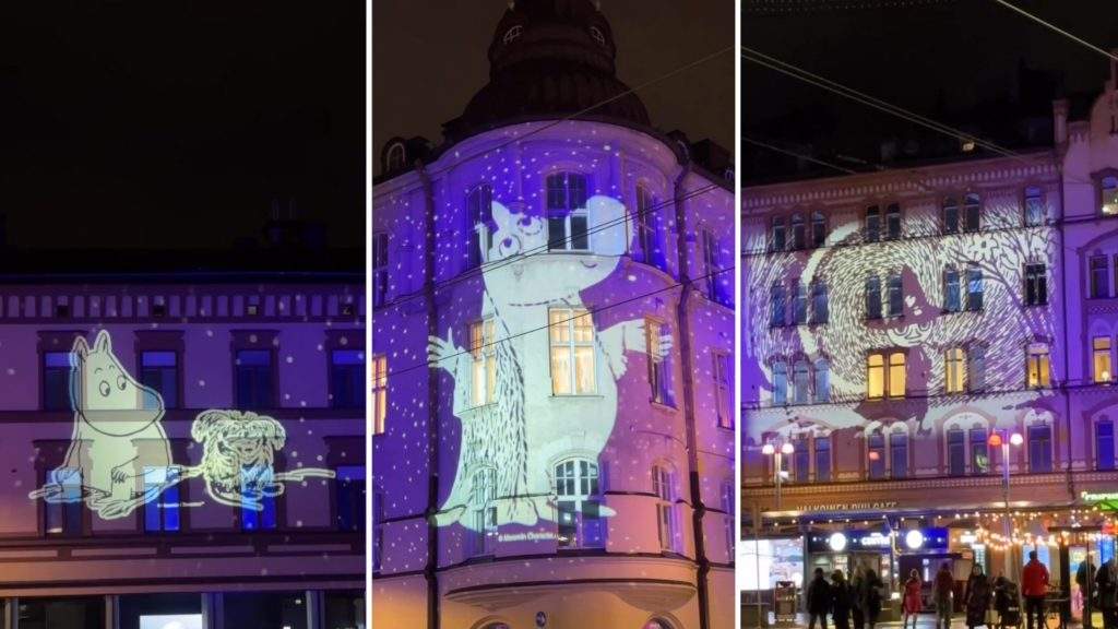 Turpat pie Keskustori centrālā laukuma šobrīd mirdz Muminu gaismas instalācijas, kas uzburtas pēc Tūves Jansones oriģinālajiem zīmējumiem no grāmatas. Pilsētas skaistā centra vidū mīt vesels ziemas brīnumu mežs ar Mumina tēliem, un tajā var ieiet gluži kā Tūves radītajā pasaulē — mīkstā, klusā, maigi apgaismotā.