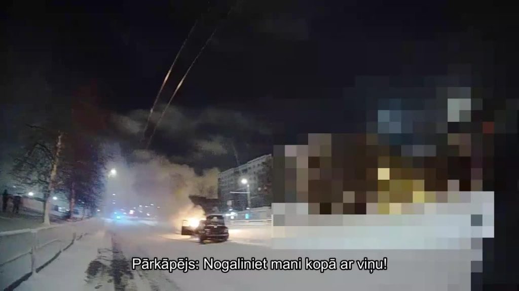 VIDEO. Iereibis BMW vadītājs ar mammas auto Pļavniekos policijas priekšā brauc sānslīdē un avarē – mašīna aizdegas 25