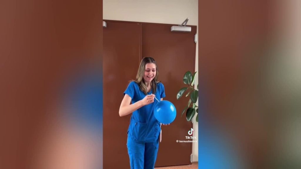 Bērnu klīniskā universitātes slimnīca sociālo mediju platformā “Tik tok” ir publicējusi video, kurā veselības aprūpes profesionāļi cenšas veikt injekciju piepūstam balonam to neuzspridzinot. Ne visiem tas izdodas, bet, kā redzams video, tas ir iespējams.
